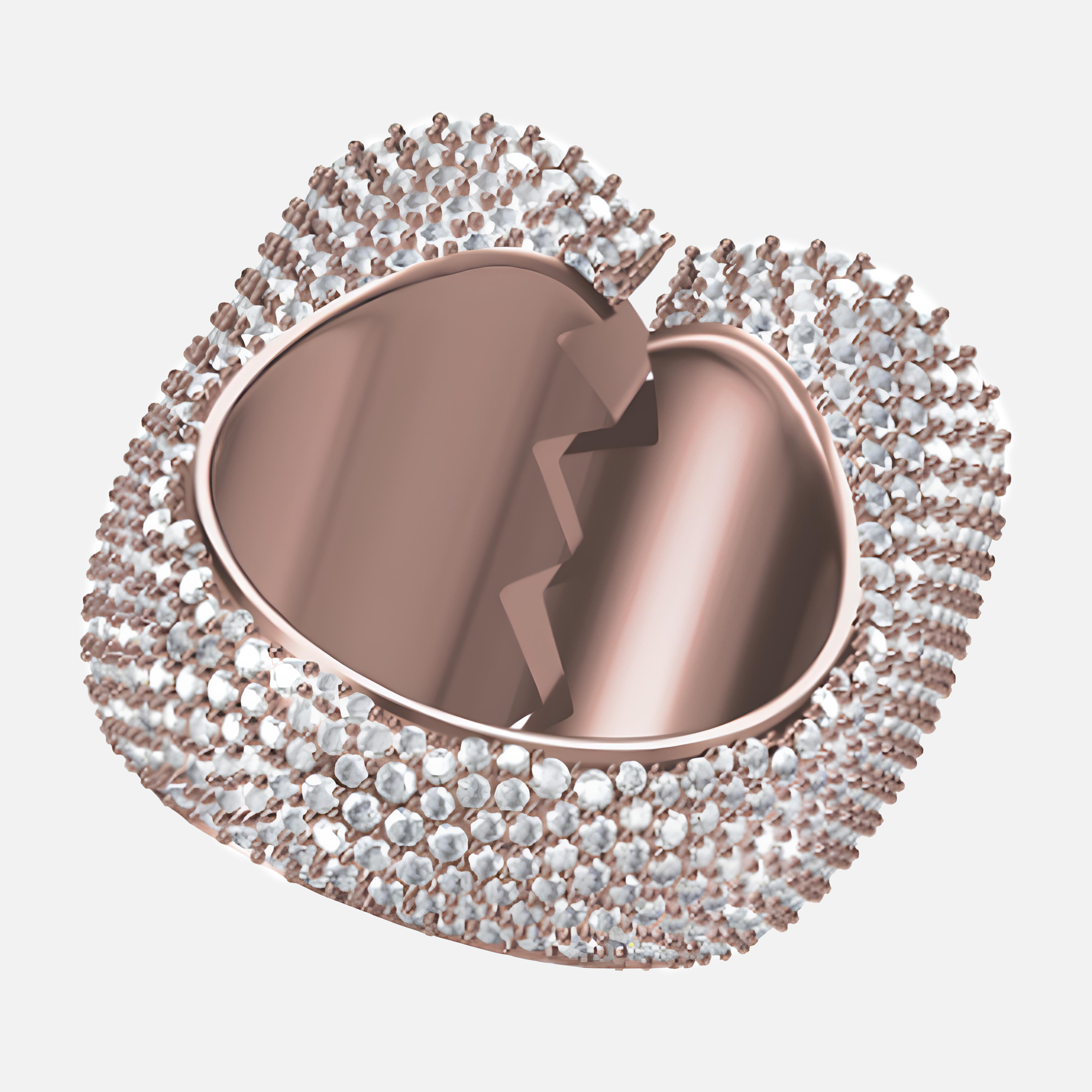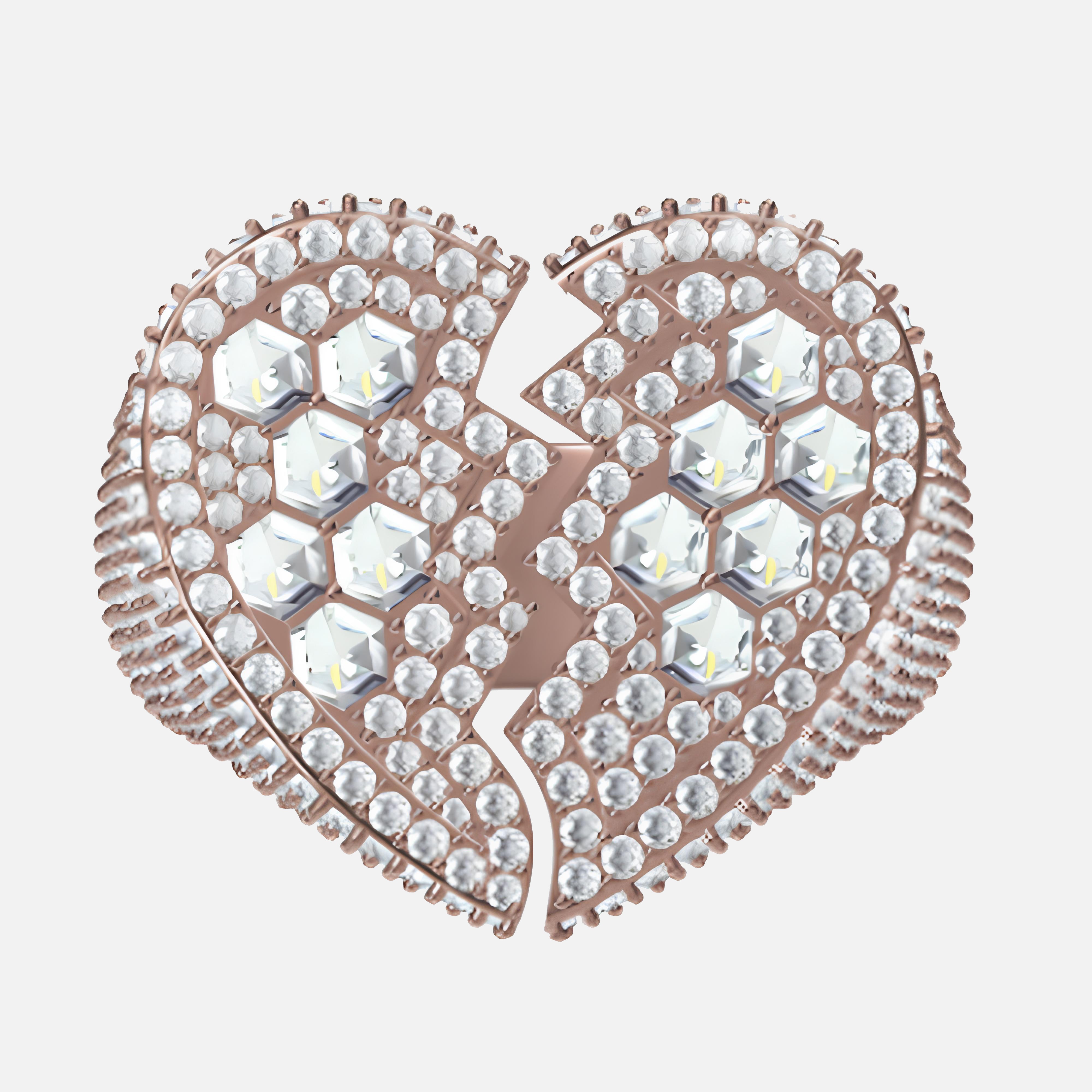 Make a bold statement with the broken Love Ring — a daring, heart-shaped design split down the center to symbolize strength through heartbreak. Fully iced with a striking combination of round and hexagon-cut stones, this piece delivers a unique mix of brilliance and edge.